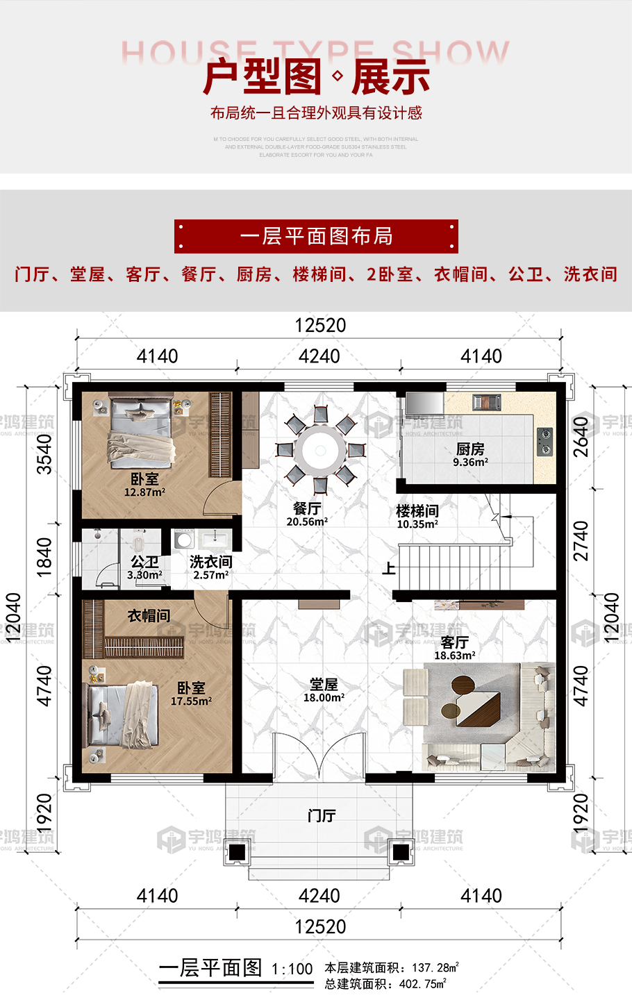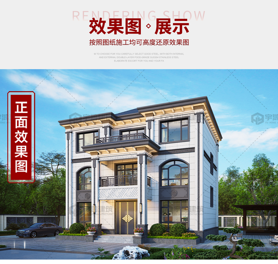 成品圖紙>12.52米x12.04米新中式三層別墅全套圖紙