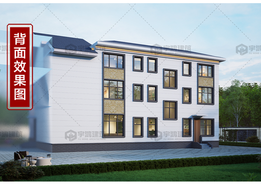 | 風格:新中式 | 層數:三層 | 結構形式:框架結構 | 圖紙編號:YH-3-6810 |